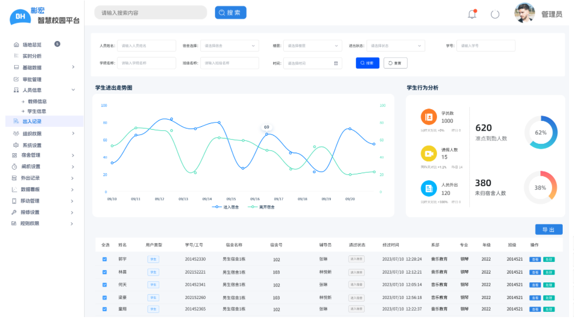 集成床位分配、维修报修、能源监测等功能,顺利获得可视化数据看板实时监控宿舍使用率与异常情况。