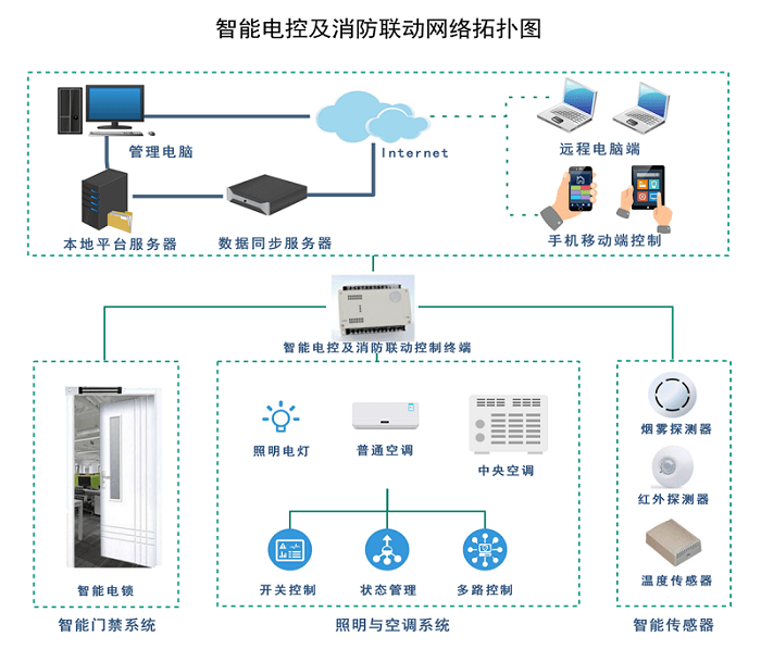 ▲智能电控及消防联动网络拓扑图